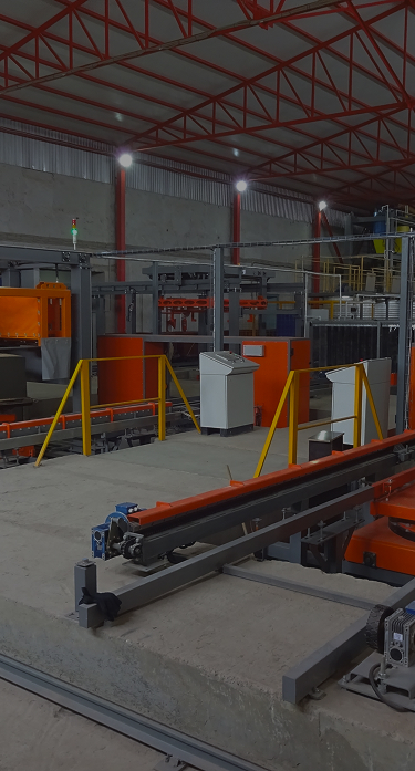 The platform is fully integrated into the production cycle and operates in synchronization with the Aerated Concrete Mixing Section and the Automatic Loading Cart, guaranteeing precise mold positioning and a stable workflow.